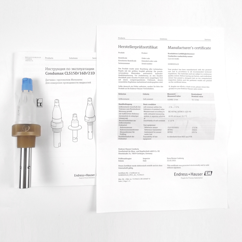 Condumax CLS15D數(shù)字式電導率傳感器特別適合低電導率測量范圍。應用十分廣泛,可以可靠進行高精度測量,即使在危險區(qū)中使用。維護工作量低,使用壽命長,傳感器性價比非常高。Condumax CLS15D不是最新一代Memosens傳感器。新一代Memosens CLS15E傳感器進行了功能升級,詳細信息