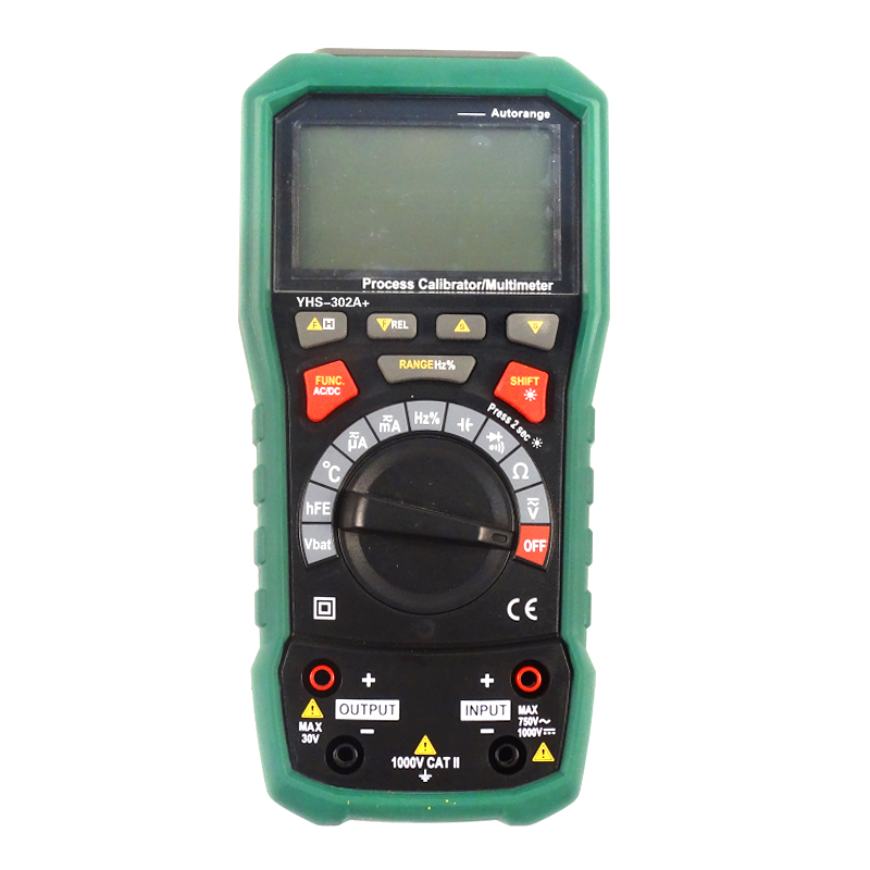 YHS-302A+型過程多用表是一種集數字萬用表和信號源功能于一體的高精度、高分辨率、高可靠的手持式綜合數字校驗儀表,能同時顯示輸出信號值和測量信號值,具有LED背光源,以便在光線暗淡的場所使用。儀表為交直流電源,更加方便使用。
